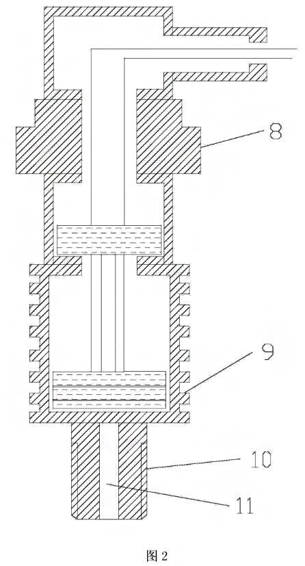 壓力變送器是一種將壓力變量轉(zhuǎn)換為可傳送的標(biāo)準(zhǔn)輸出信號(hào)的儀表,在制yao、食品、飲料、釀酒等生產(chǎn)中常用于液體流量壓力參數(shù)的測(cè)量和控制,是一種重要的儀表裝置。現(xiàn)有技術(shù)的壓力變送器存在以下技術(shù)缺陷:首先、常規(guī)壓力變送器的工作溫度一般在85度以下,而食品、藥品、以及釀酒應(yīng)用中常需要150度的無(wú)菌、高溫密封環(huán)境,為了散熱,現(xiàn)有技術(shù)采用增大散熱面積的散熱片(9)來(lái)空導(dǎo)散熱,而在特殊高溫且無(wú)空氣流動(dòng)的密閉環(huán)境下,這種散熱方式遠(yuǎn)遠(yuǎn)不能滿足實(shí)際散熱需求,尤其是變送器的電路元件極易發(fā)生損壞,甚至引發(fā)事故,造成不必要的損失,因此有必要改進(jìn)。其次、現(xiàn)有技術(shù)的壓力變送器接口部分